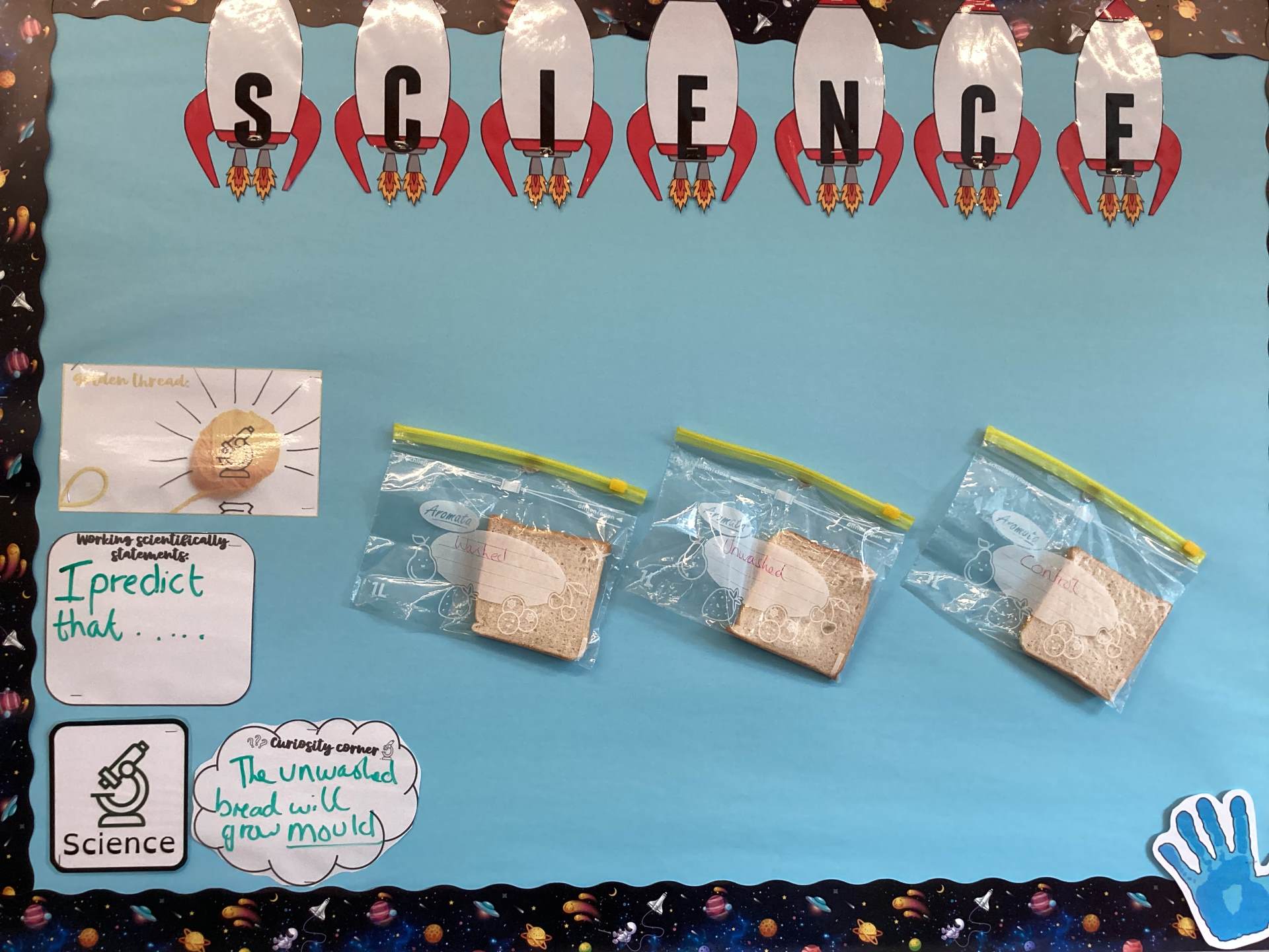 This week have been conducting an experiment to understand how germs are transferred by using three slices of bread.