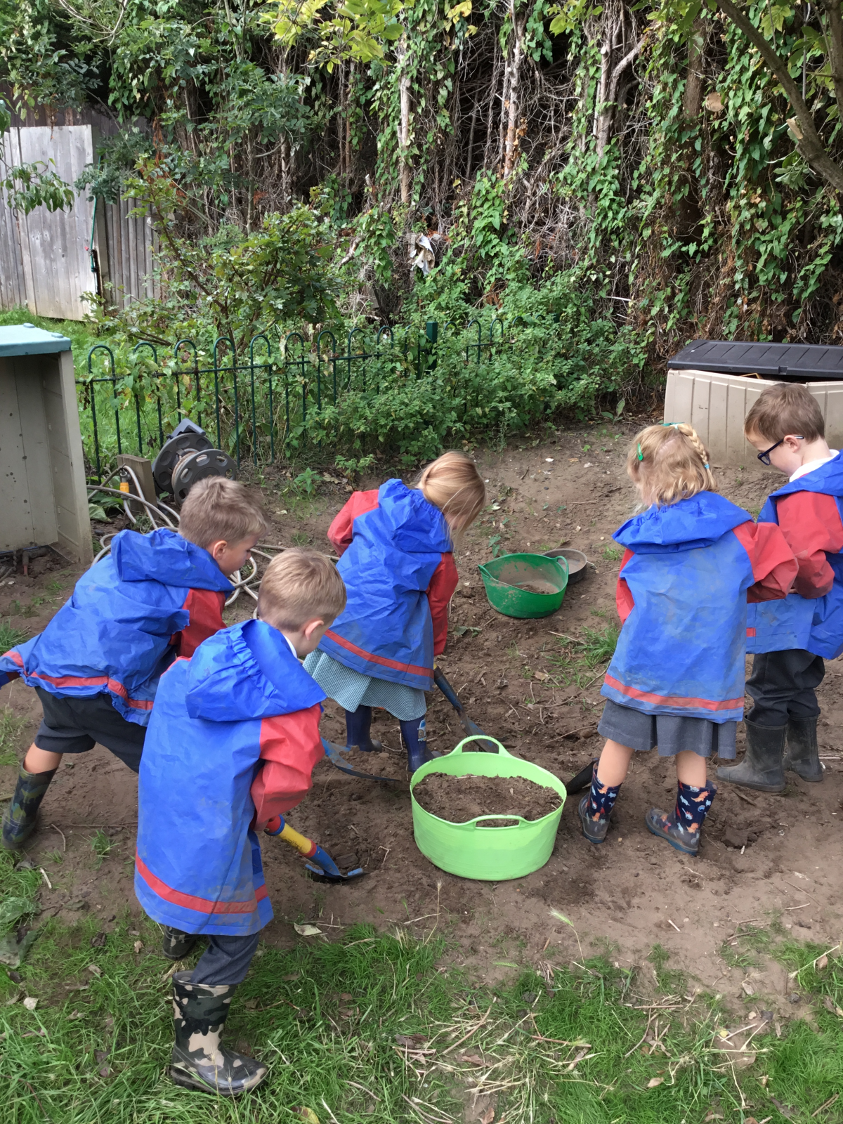 In RE, we have been talking about 'What makes me special' by sharing photos and talking about our families. The children have really enjoyed working and learning together in our outdoor areas, developing gross motor skills, communication skills and sharing skills. It has been lovely to see the children getting stuck into our digging area and mud kitchen.